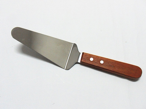 Xẻng xúc bánh tam giác cán gỗ, lưỡi inox